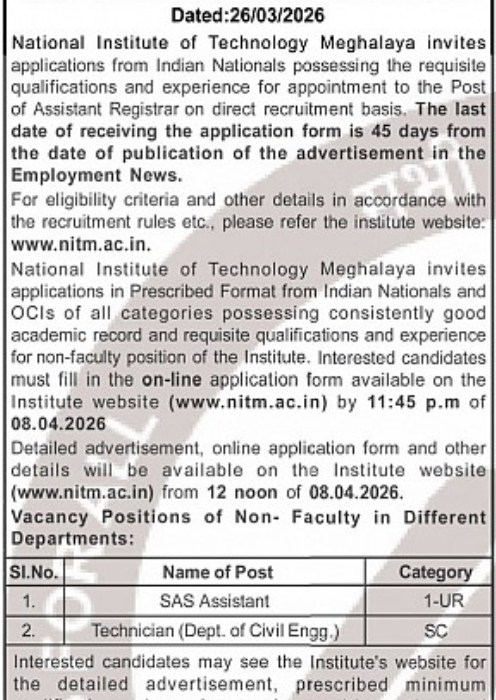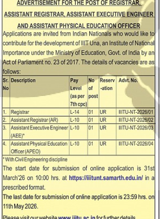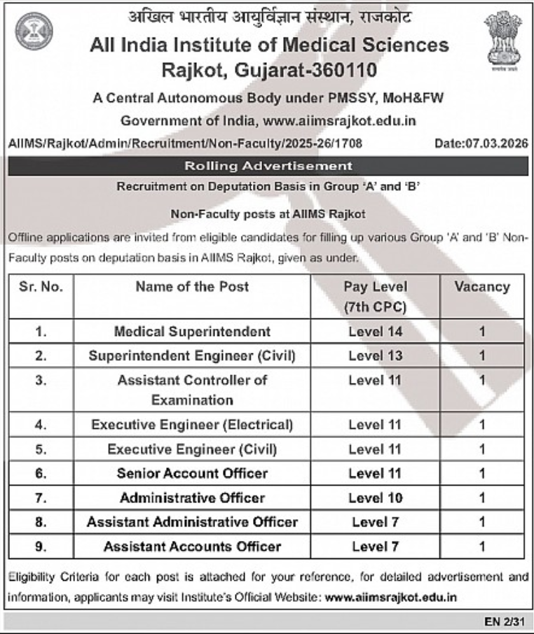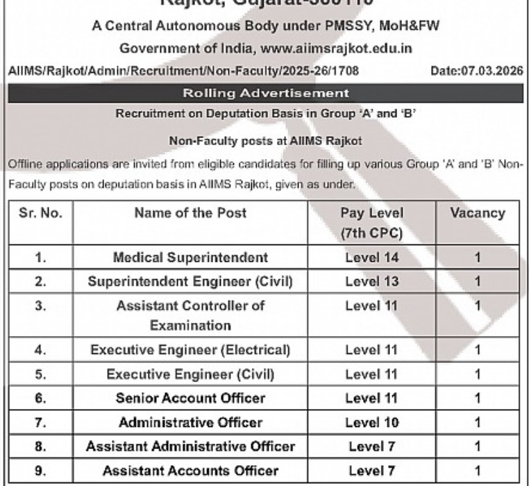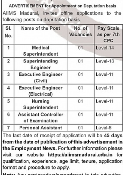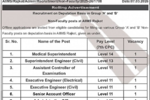 All India Institute of Medical Sciences Madurai has released a notification inviting offline applications for various posts on deputation basis. Eligible officers can apply for positions including Medical Superintendent, Superintending Engineer, Executive Engineer, Nursing Superintendent, Assistant Controller of Examination and Personal Assistant. The recruitment is being conducted under Advertisement No. AIIMS/Madurai/NF/Deputation/2026 dated 01 April 2026….